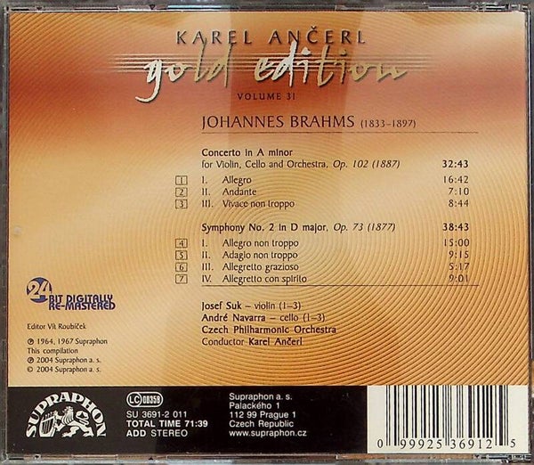 Karel Ancerl Brahms Double Concerto Sympony No. 2 Gold Edition - Volume 31